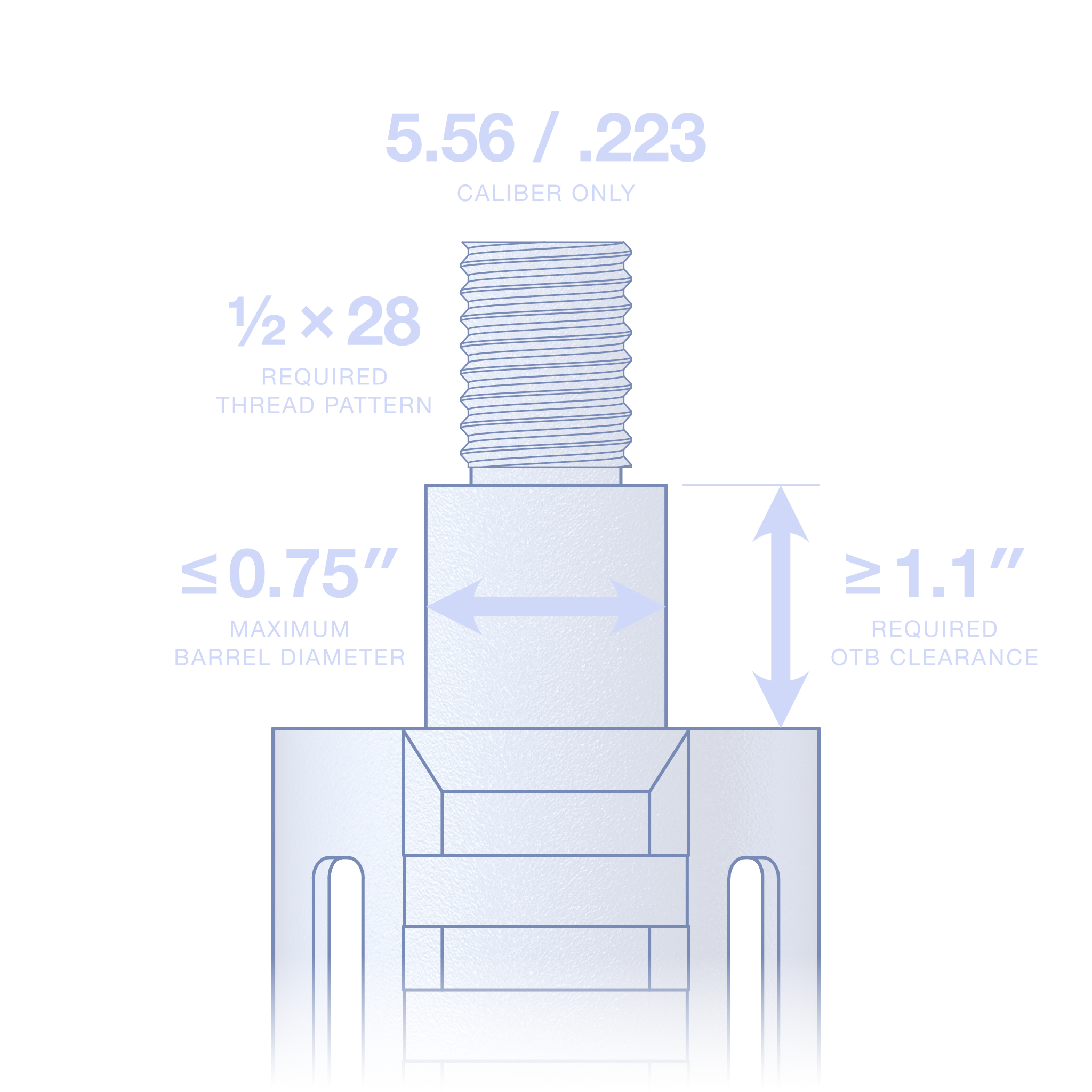 Your weapon system must satisfy the following constraints in order to use MFMD-5.56-1.1-MD-1/2X28.