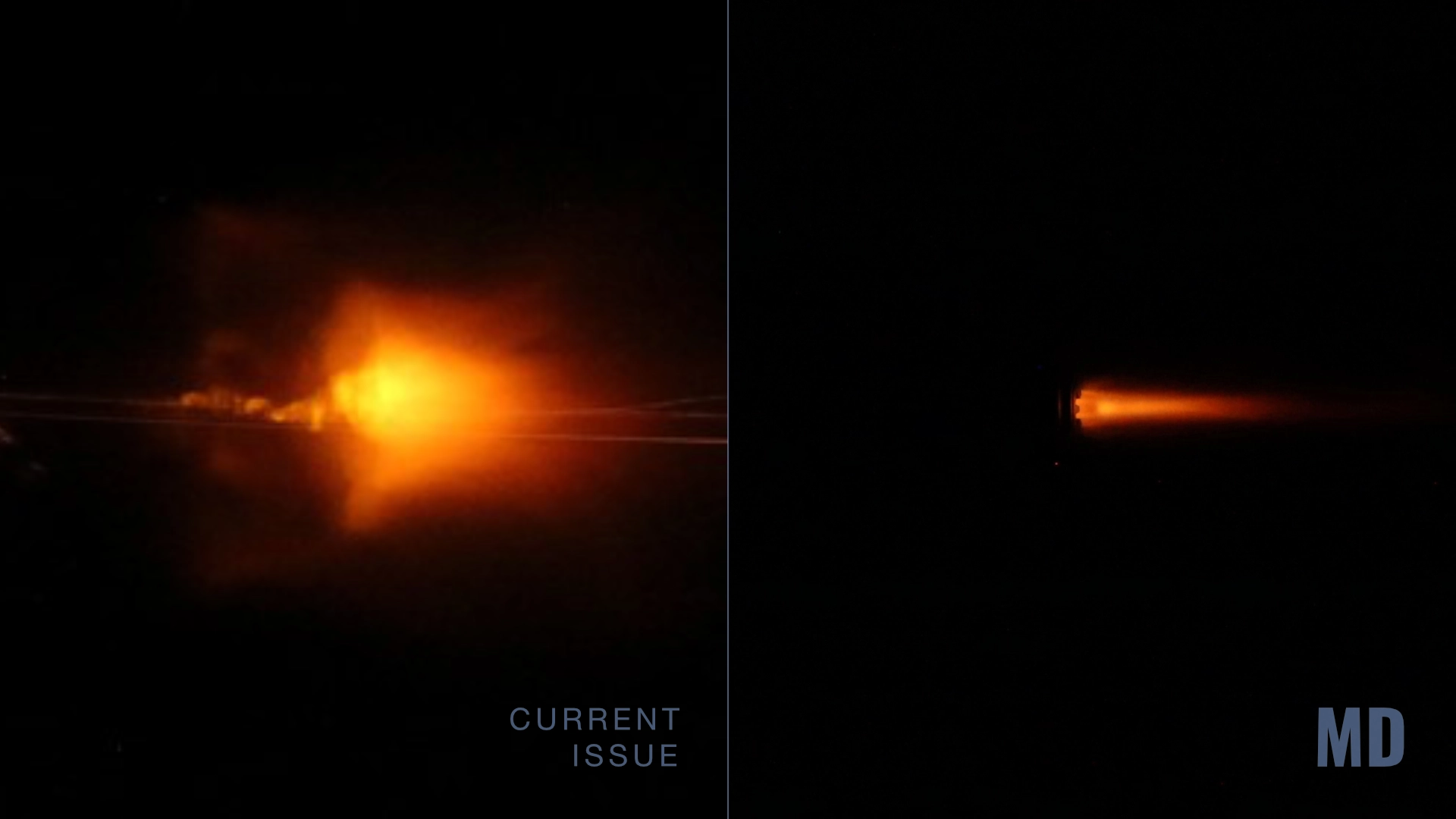 10,000 FPS high-speed analysis of the exhaust gasses venting forward from the MFMD-6.8-2.0MG-MD.